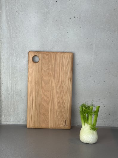 Das runde Brett mit Griff ist ein unverzichtbarer Helfer in der Küche. Mit seiner idealen Größe und Form ist das robuste und massive Eichenholzbrett perfekt für alle Küchenarbeiten geeignet. Auf der stabilen Holzfläche kann man Zutaten hacken, zerkleinern, filetieren oder große Fleischstücke zart klopfen.